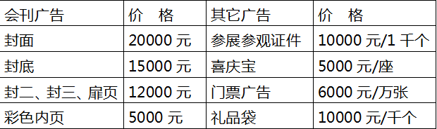 标准展位:国内企业6800元/个,双开口加收1000元;国外企业1500美元/个;3m×3m标准展位配置:三面展板、一条楣板、一张桌子、两把椅子、220V/5A单相电源插座、两盏射灯。