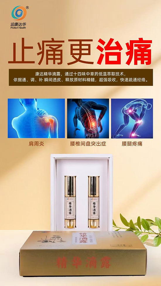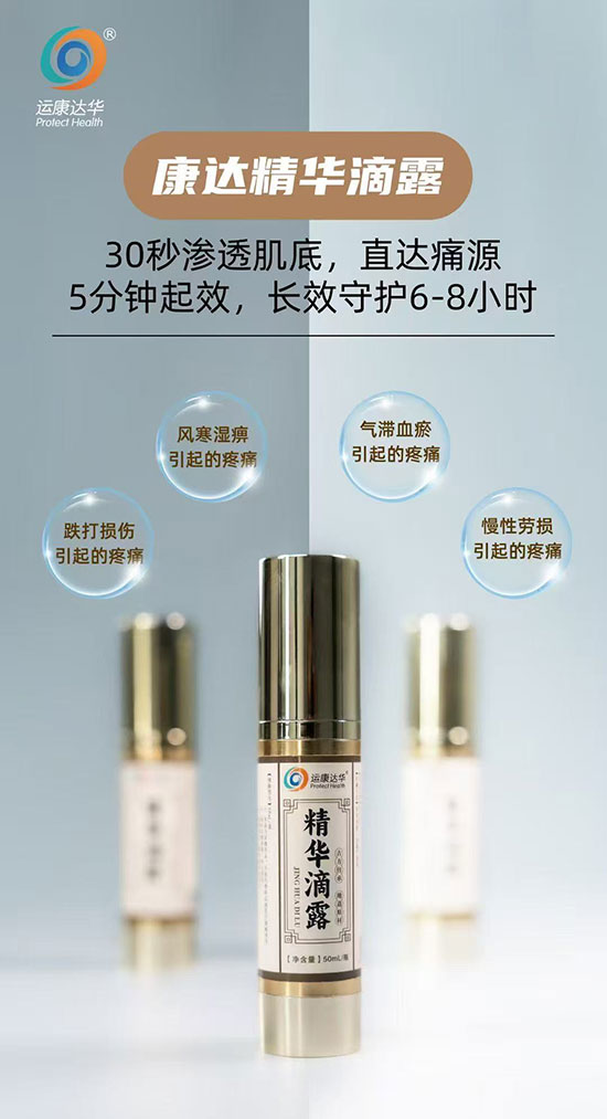 3.康达集团再出新品-康达精华滴露。中药草本低温萃取,通过通,调,补,瞬间透皮,释放原材料精髓,**吸收,快速疏通经络,止痛活血非常棒!
