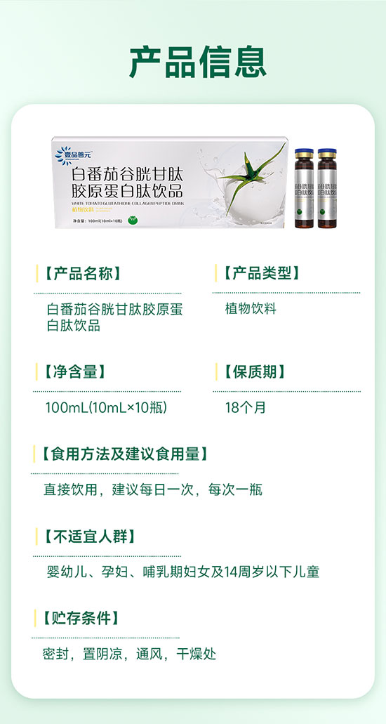 壹品善元TM白番茄谷胱甘肽胶原蛋白肽饮品