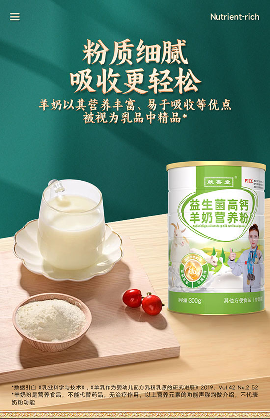 献善堂益生菌高钙羊奶营养粉