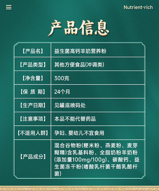 产品类型:特种营养品