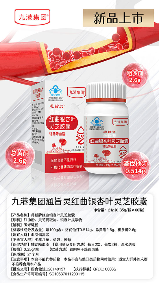 【原料】红曲粉、灵芝提取物、银杏叶提取物